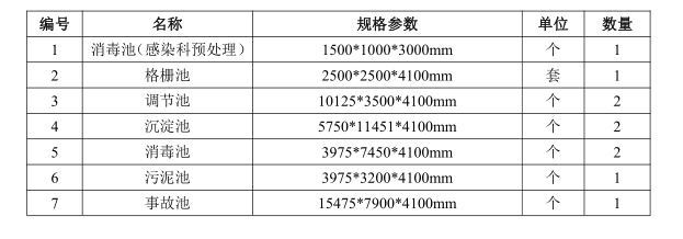 (一) 污水处理站污染物来源及排放要求医院 废水主要包括医疗废水(主要来自于病房、门诊、医技等)、非医疗废水(非病区生活废水、地下车库冲洗废水等)、食堂废水和特殊医疗废水(口腔科、检验科废水、病理科化学废液)。医疗废水、非病区生活污水统一收集经化粪池处理,食堂废水、地下车库冲洗废水经隔油沉淀处理后和中央空调冷却塔排水一起进入医院自建的污水处理站(处理规模为 1500m³/d),经处理达到《医疗机构水污染物排放标准》(GB18466-2005)排放限值(日均值)中的预处理标准、赤坎水质净化厂接管要求中的较严标准后排入市政污水管网,最终进入赤坎水质净化厂 。